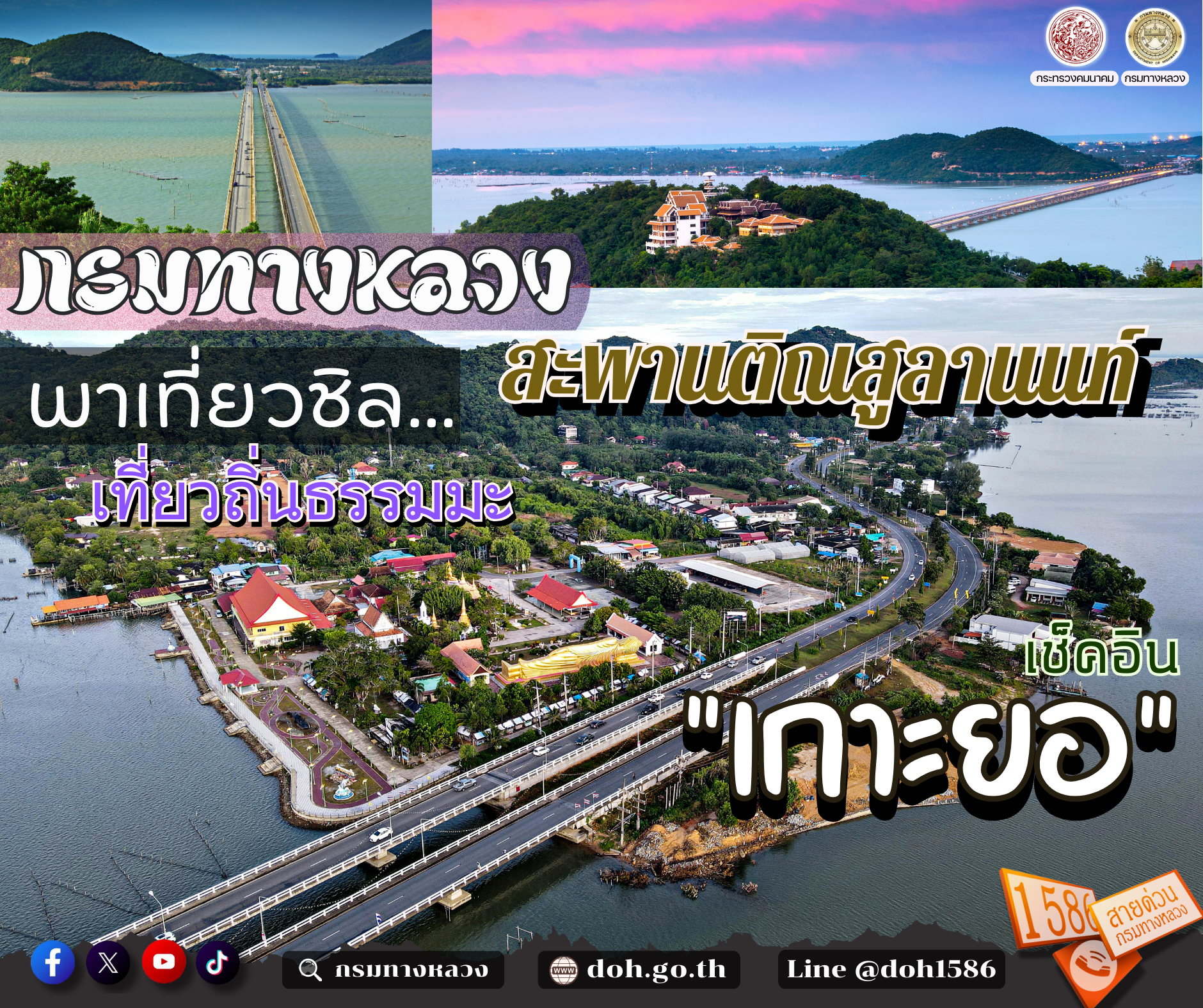 10 28/03/2568 กรมทางหลวง พาเที่ยวชิล...สะพานติณสูลานนท์ ชมพระอาทิตย์ตกดิน เที่ยวถิ่นธรรมมะ เช็คอิน “เกาะยอ”