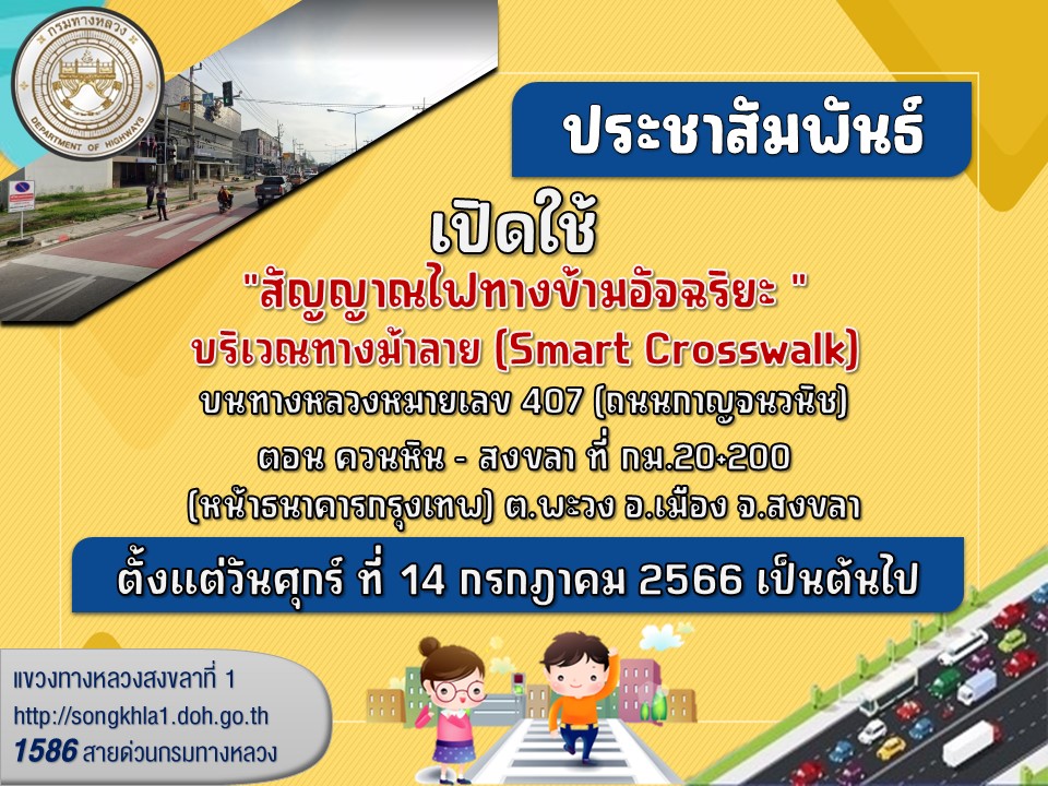 เปิดใช้ "สัญญาณไฟทางข้ามอัจฉริยะ" บริเวณทางม้าลาย (Smart Crosswalk) บนทางหลวงหมายเลข 407 (ถนนกาญจนวนิช)