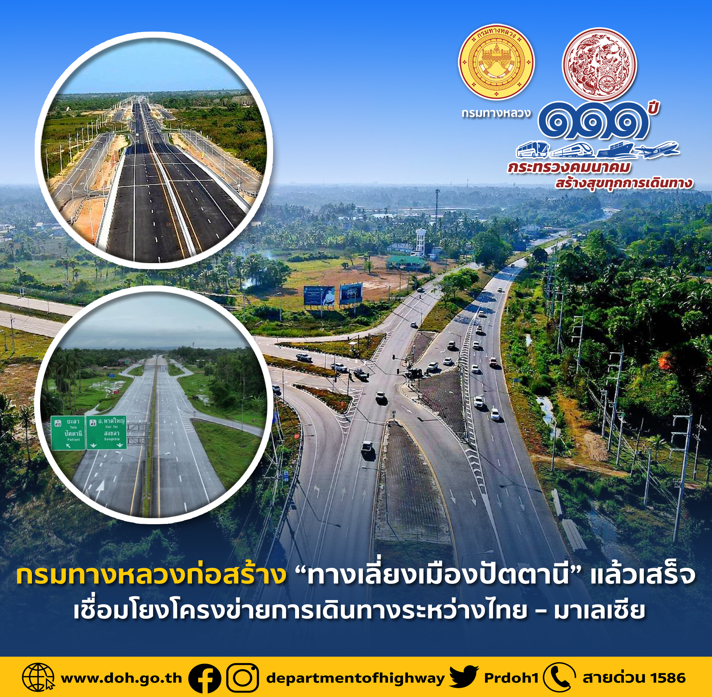 กรมทางหลวงก่อสร้าง “ทางเลี่ยงเมืองปัตตานี” แล้วเสร็จ เชื่อมโยงโครงข่ายการเดินทางระหว่างไทย – มาเลเซีย
