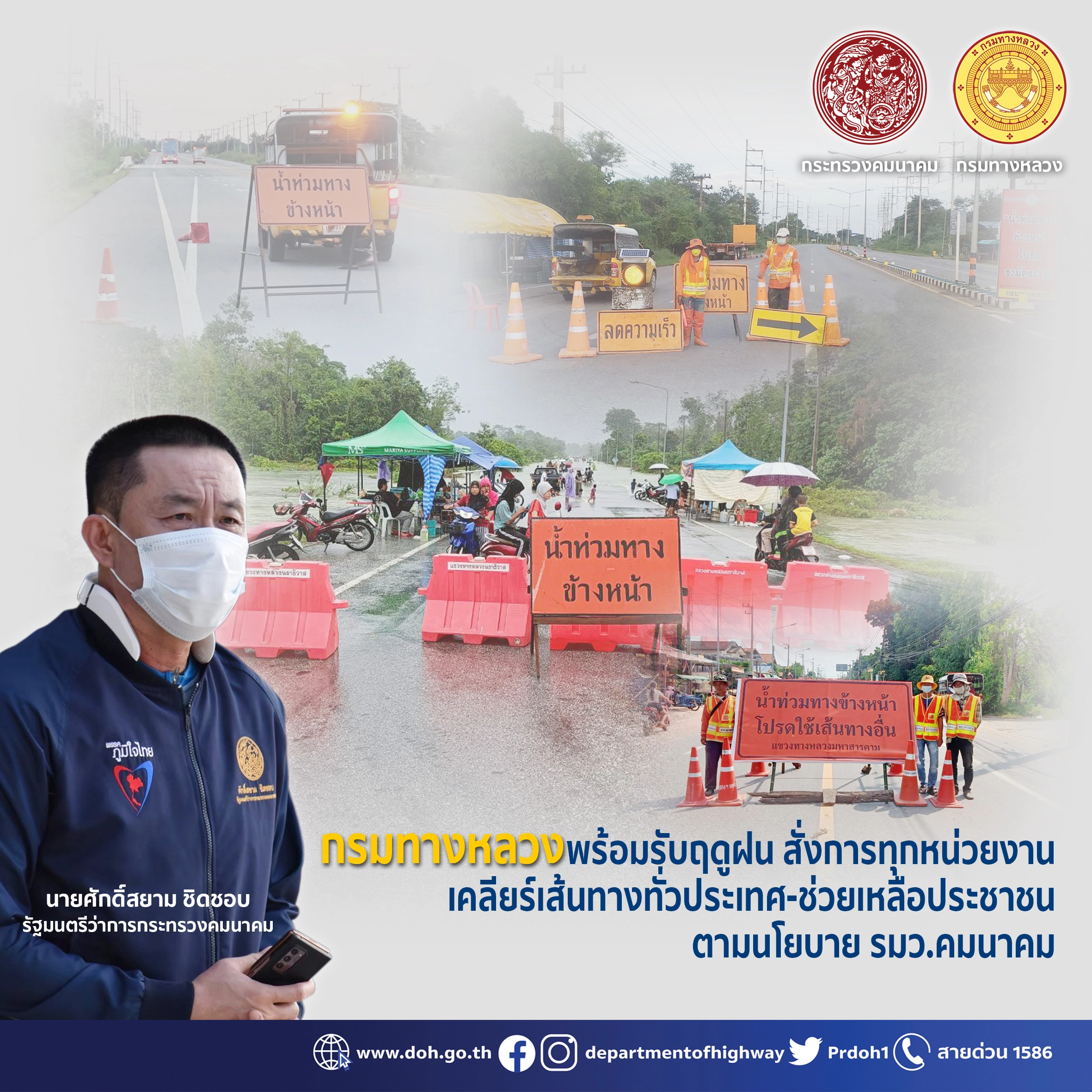 กรมทางหลวงพร้อมรับฤดูฝน สั่งการทุกหน่วยงานเคลียร์เส้นทางทั่วประเทศ-ช่วยเหลือประชาชนตามนโยบาย รมว.คมนาคม