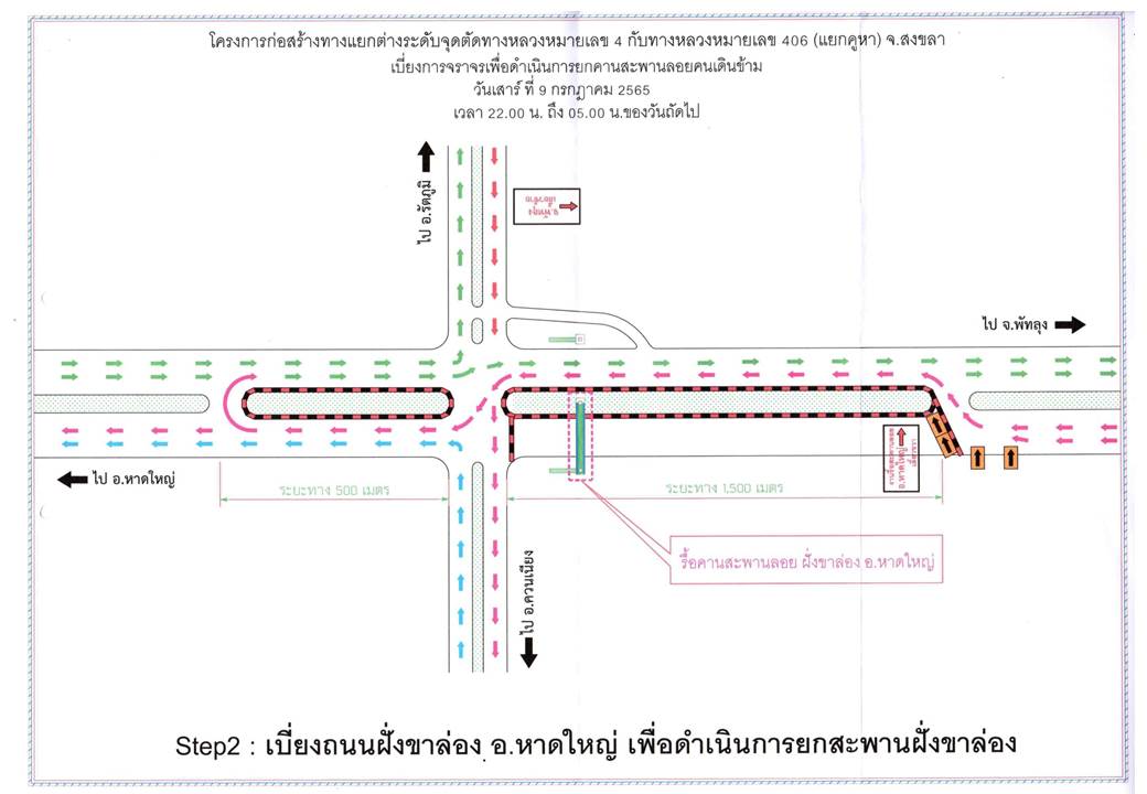 ดำเนินการเบี่ยงการจราจร เพื่อยกคานสะพานลอยคนข้ามบริเวณแยกคูหา ในวันเสาร์ที่ 9 กรกฎาคม 2565 เวลา 22.00 น. ถึง เวลา 05.00 น. ของวันถัดไป