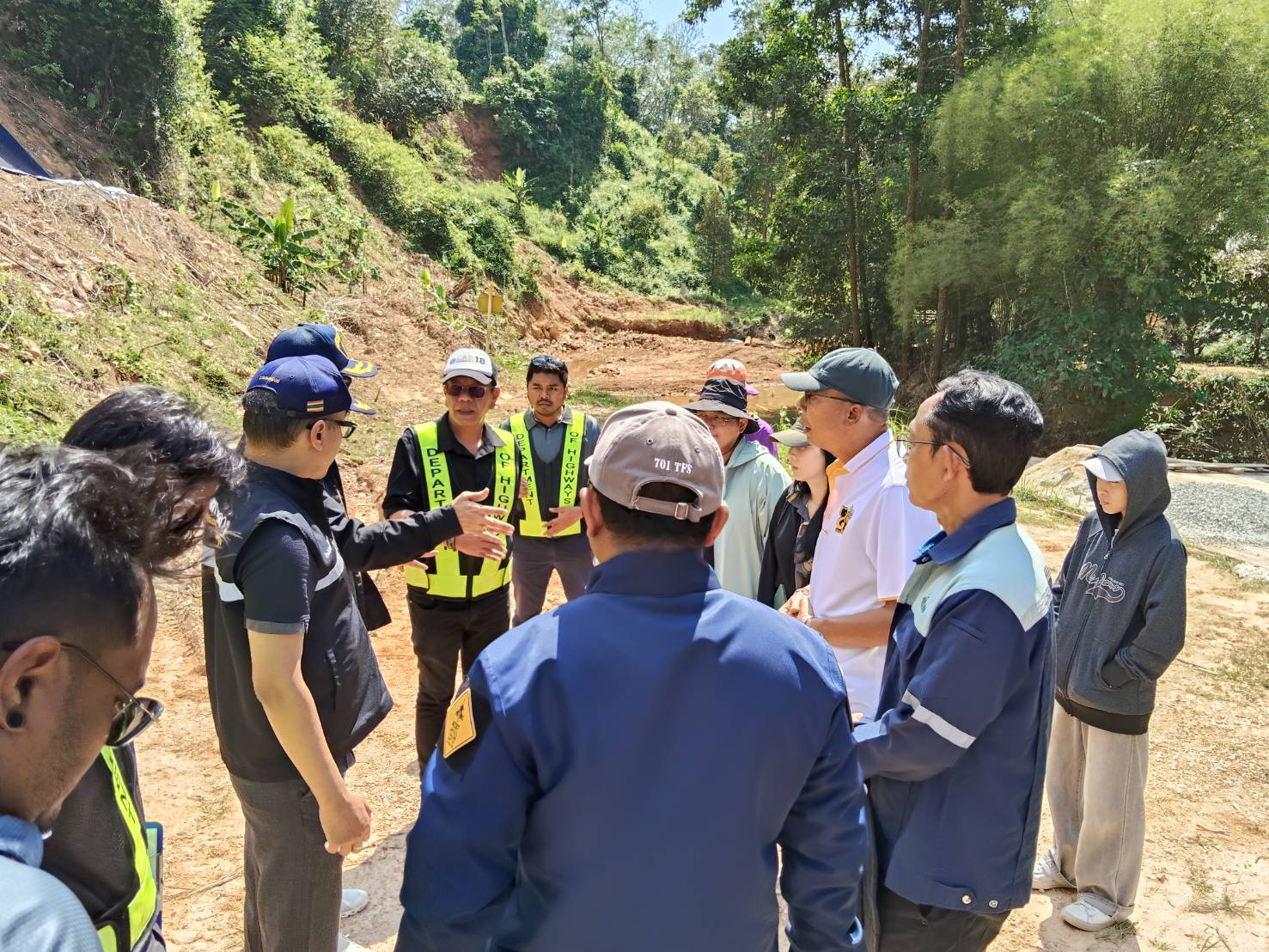 วันที่ 27 มกราคม นายกิตติพล ด้วงเจ้ย ผู้อำนวยการแขวงทางหลวงสงขลาที่ 1 พร้อมด้วยเจ้าหน้าที่แขวงทางหลวงสงขลาที่ 1 ได้ลงพื้นที่ร่วมกับ ดร.ปรนิก จิตต์อารีกุล วิศวกรโยธาเชี่ยวชาญ, นายฉัตรชัย จันทร วิศวกรโยธาชำนาญการพิเศษ, เจ้าหน้าที่จากสำนักวิเคราะห์และตรวจสอบ กรมทางหลวง รวมถึงเจ้าหน้าที่จากบริษัท ทรานส์ ไทย–มาเลเซีย (ประเทศไทย) จำกัด เพื่อร่วมกันตรวจสอบสภาพพื้นที่และพิจารณาแนวทางในการป้องกันและแก้ไขปัญหา คันทางสไลด์จากอุทกภัย