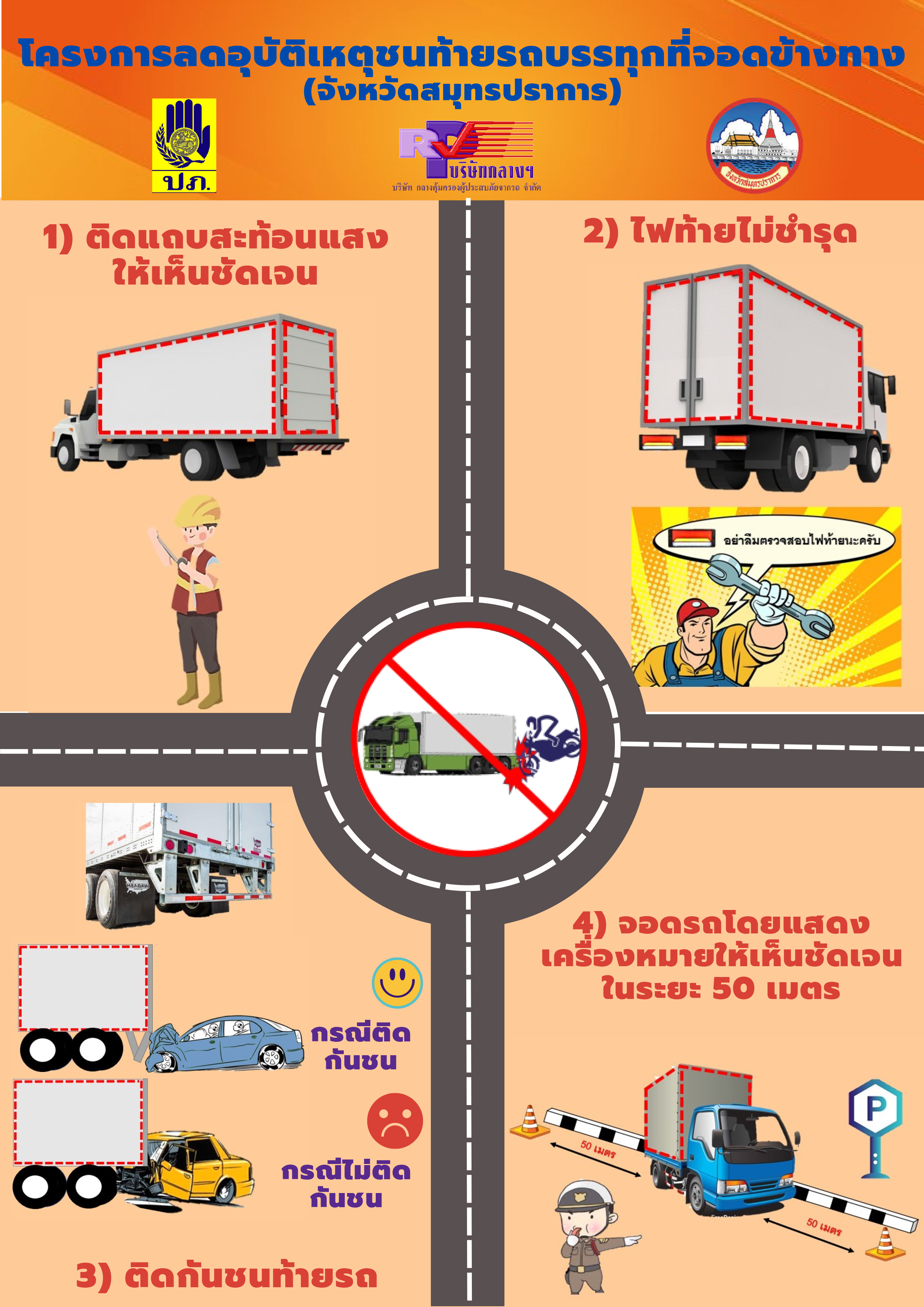 เนื้อหาเพจ : โครงการลดอุบัติเหตุชนท้ายรถบรรทุกที่จอดข้างทาง (จังหวัดสมุทรปราการ)