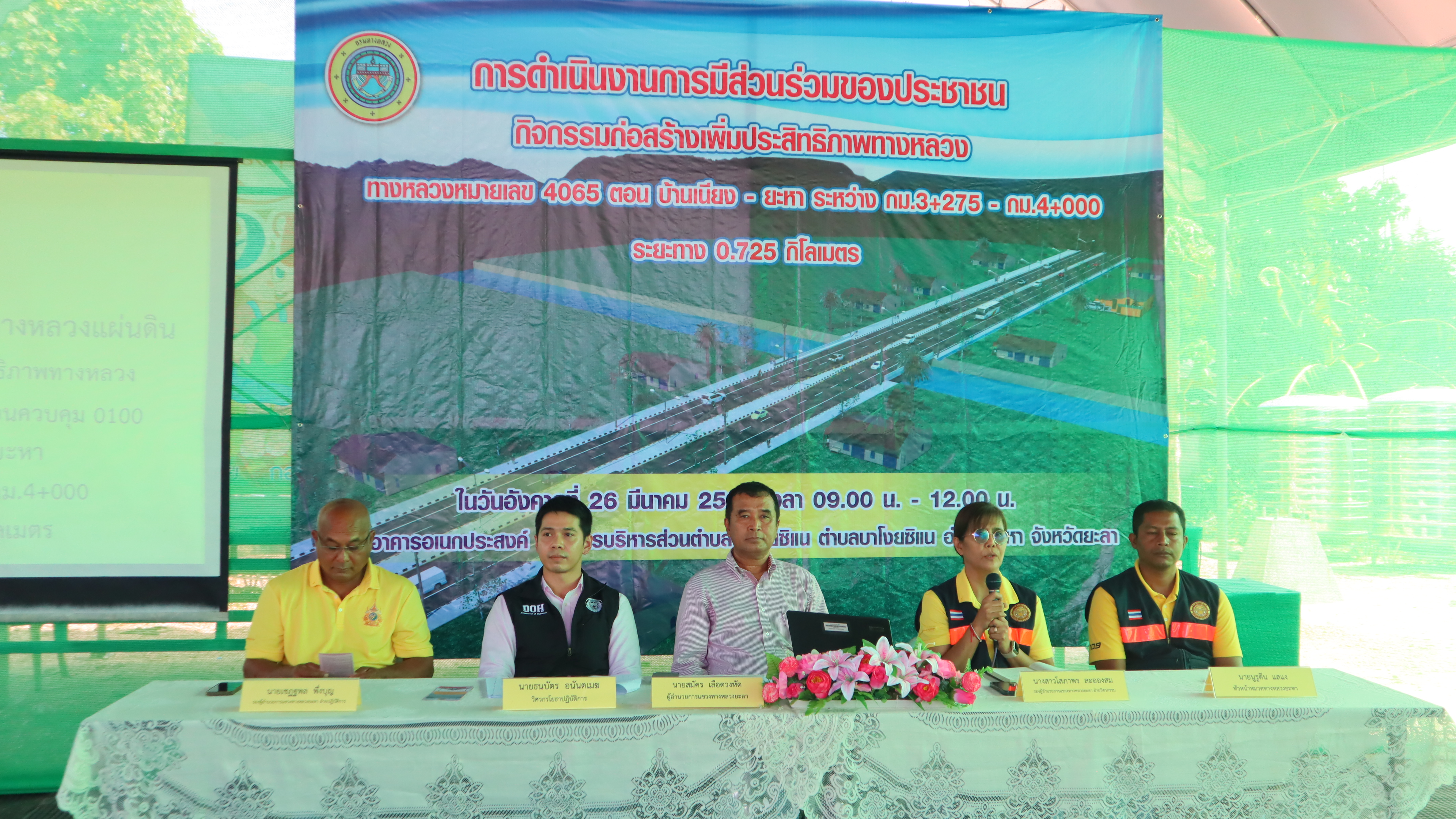 ในวันอังคาร ที่ 26 มีนาคม 2567 เวลา 09.00 - 12.00 น. แขวงทางหลวงยะลา จัดประชุมการมีส่วนร่วมของประชาชน กิจกรรมก่อสร้างเพิ่มประสิทธิภาพทางหลวง ทางหลวงหมายเลข 4065 ตอน บ้านเนียง - ยะหา ระหว่าง กม.3+275 - กม.4+000 เชิญทุกภาคส่วนในการชี้แจงแสดงความคิดเห็นและข้อเสนอแนะการดำเนินกิจกรรมร่วมกัน ณ อาคารอเนกประสงค์ องค์การบริหารส่วนตำบลบาโงยซิแน ตำบลบาโงยซิแน อำเภอยะหา จังหวัดยะลา